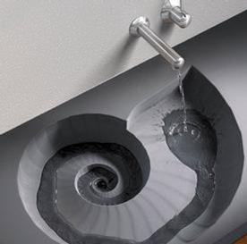 水流旋轉的溜走了,讓你洗手也好似能看到龍卷風的感覺。只要一開就不想把水停了!