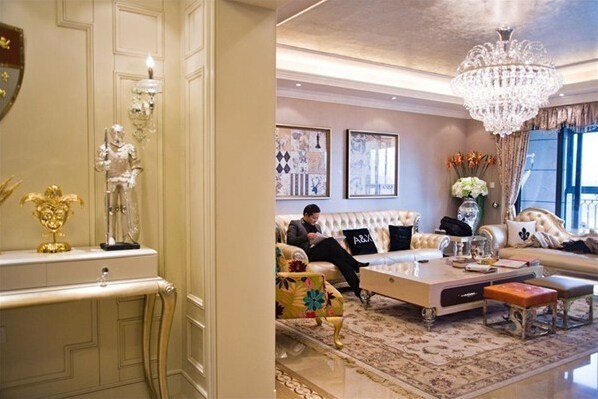 他們不約而同地選擇了上海——這個野心勃勃的、遠離中國政治中心的國際化都市作為自己安居和投資之地。這些年輕人,或自己創(chuàng)業(yè),或從父輩手中繼承家族企業(yè)。他們工作努力,消費亦很驚人。圖為房地產(chǎn)企業(yè)老總戴軍(音譯)在自家豪宅內(nèi)。