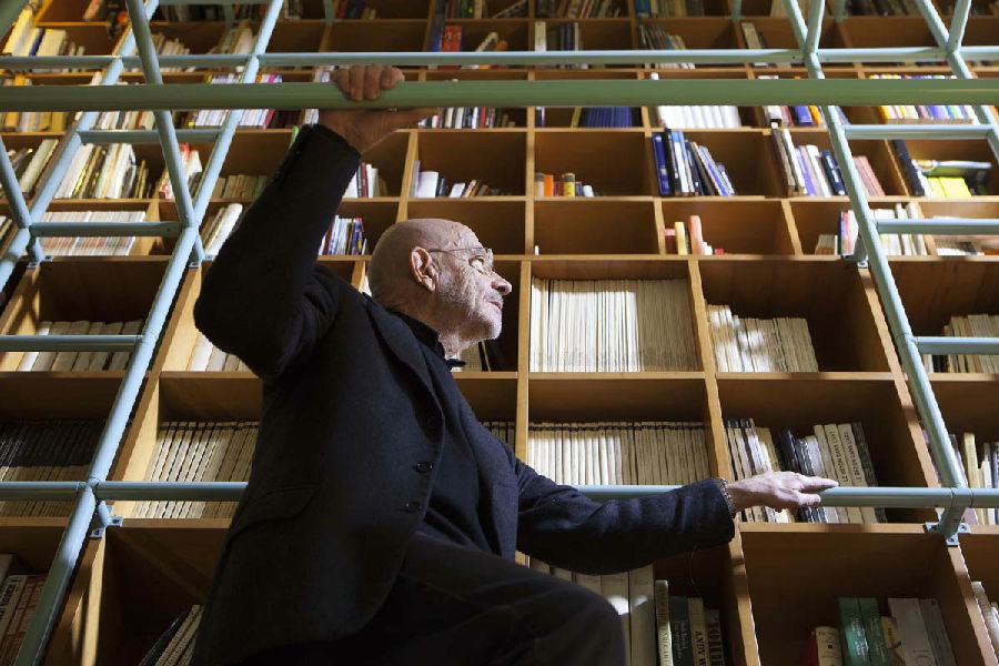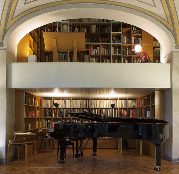 Bellini愛米蘭,愛這座城市的文化和街道。這位意大利建筑大師的家就在米蘭市中心附近,一座建筑物的19樓。整個(gè)家的顏色就是典型的意大利風(fēng)格,最引入注目的是書房——這里簡(jiǎn)直就是一座圖書館,高達(dá)九米的書柜放滿了各式書籍。